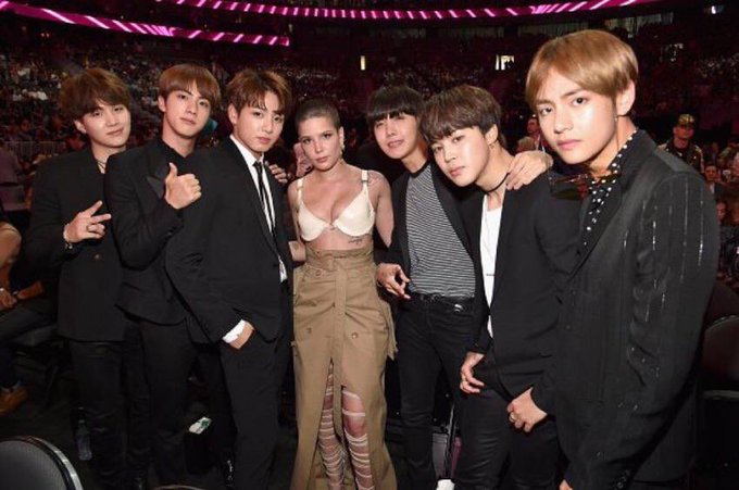 Rap Monster đã thất vọng vì đã bỏ lỡ bức ảnh của BTS với ca sĩ người Mỹ, Halsey, và nhờ ARMY photoshop cậu ấy trong bức ảnh.